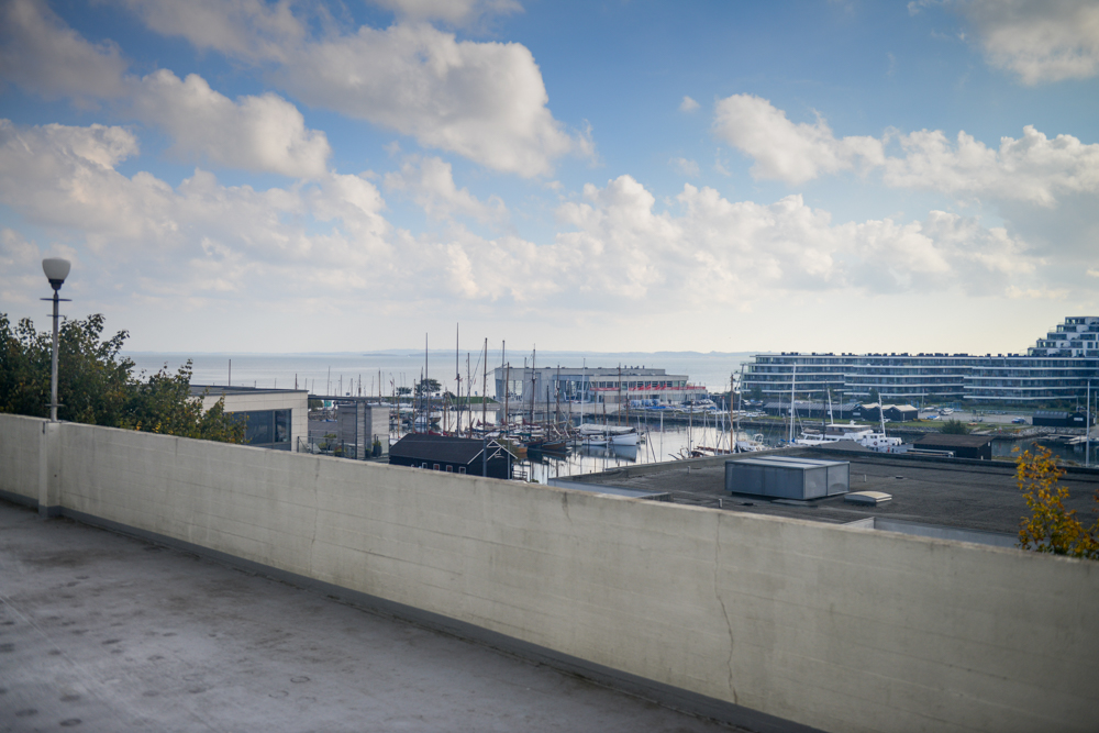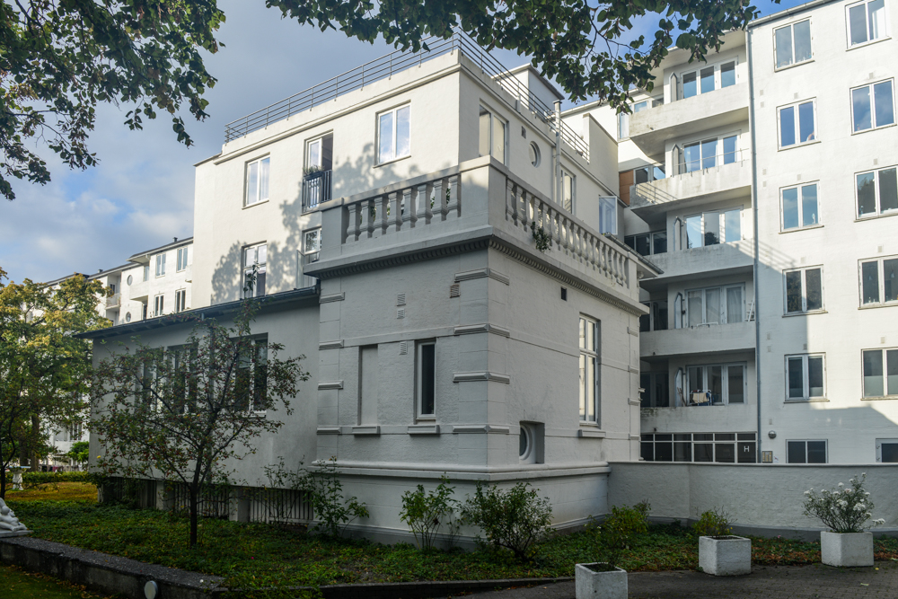 Gårdhaven er udstyret med springvand og store løvtræer, som stammede fra de gamle herskabsvillaers haver. Fra de fælles tagterrasser er der udsigt ud over havnen og Aarhusbugten.
